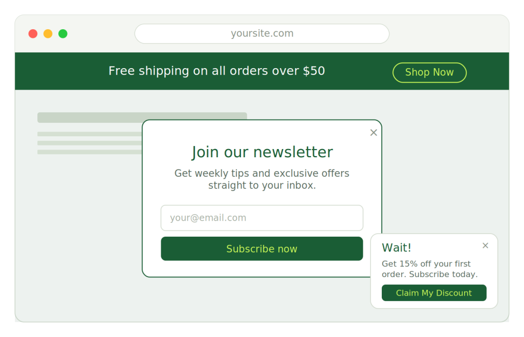 - Slide-ins — subtle corner popups that don’t interrupt the reading experience